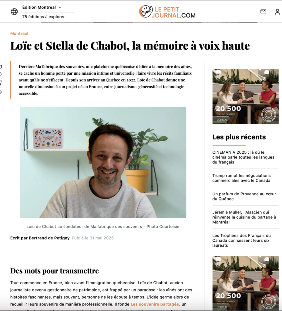 C’est un véritable coup de coeur que nous avons eu pour Les Souvenirs Partagés. Une initiative d’utilité publique et familiale qui devrait être remboursée par la Sécu. Et pourquoi pas ? Les plus beaux souvenirs peuvent guérir et apaiser !​